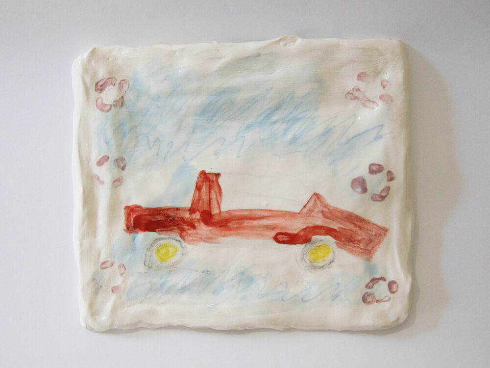 Dani River KingPink flowers, red car, 202317 cm H x 20 cm W x 1cm D$250 -