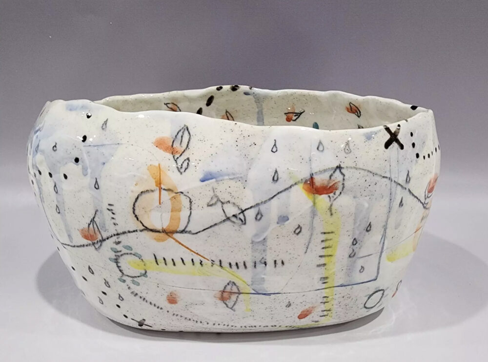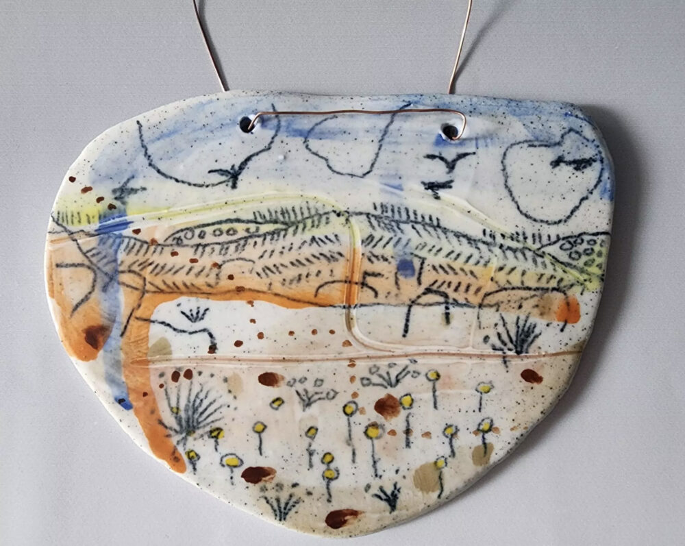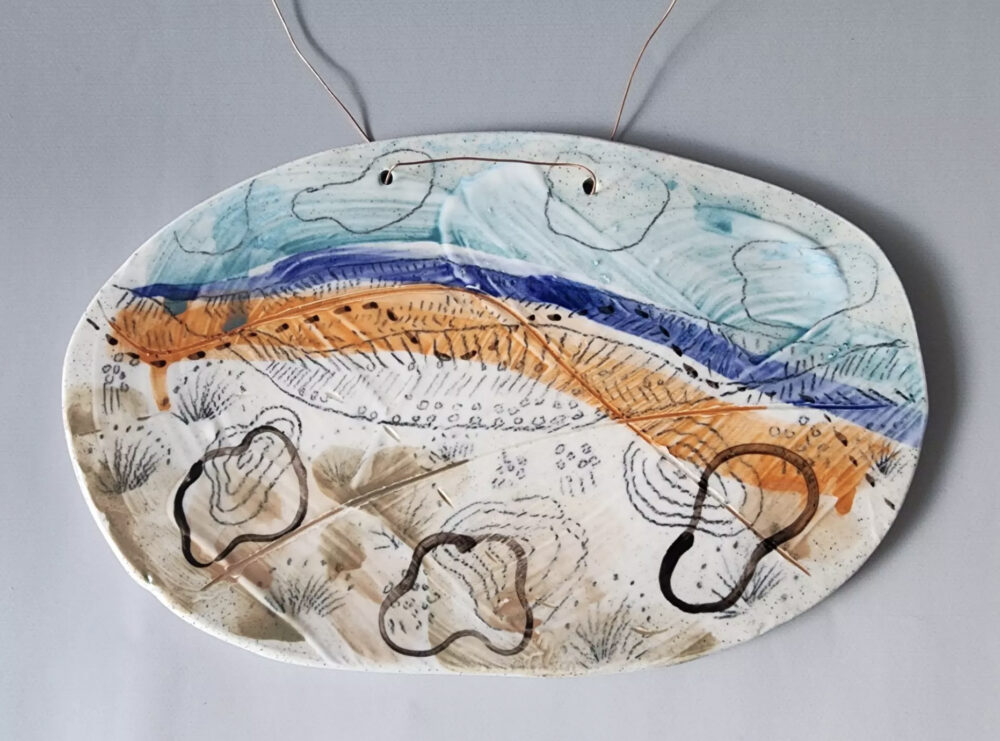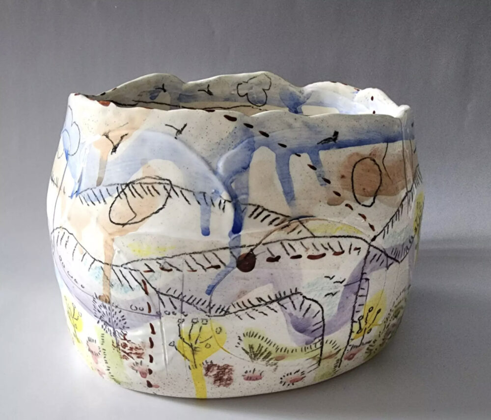Midfire Clay, Slip, Watercolour unerglazes, pencil & chalk